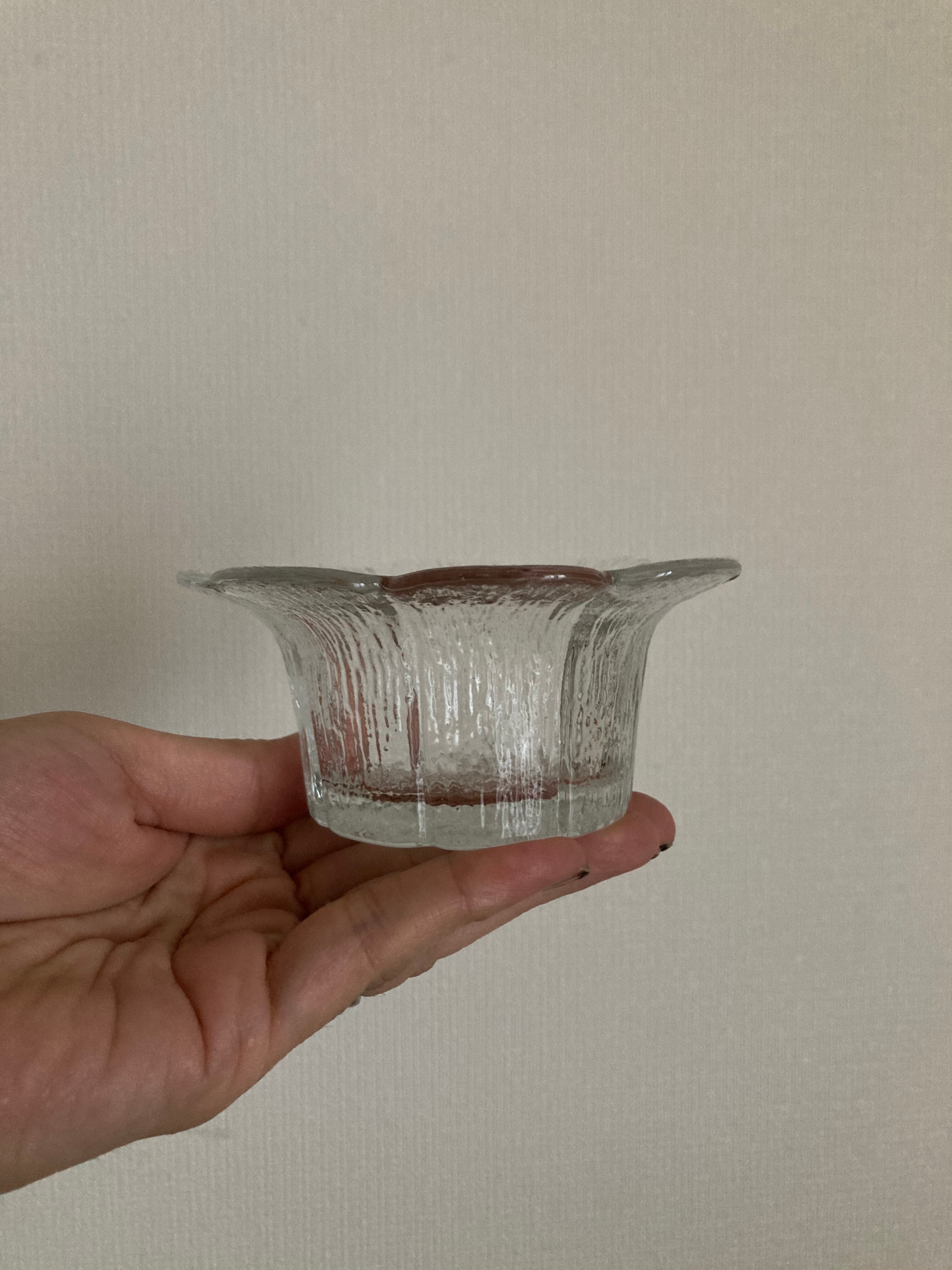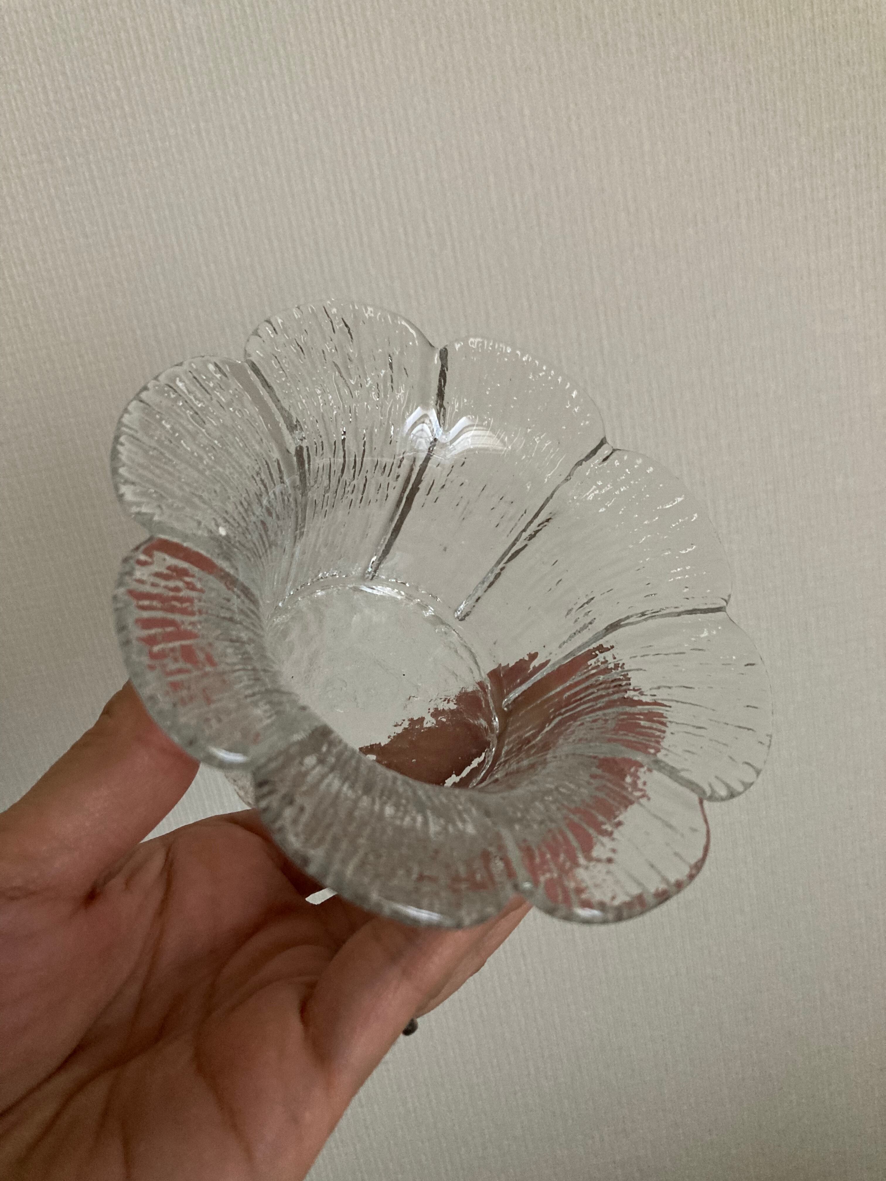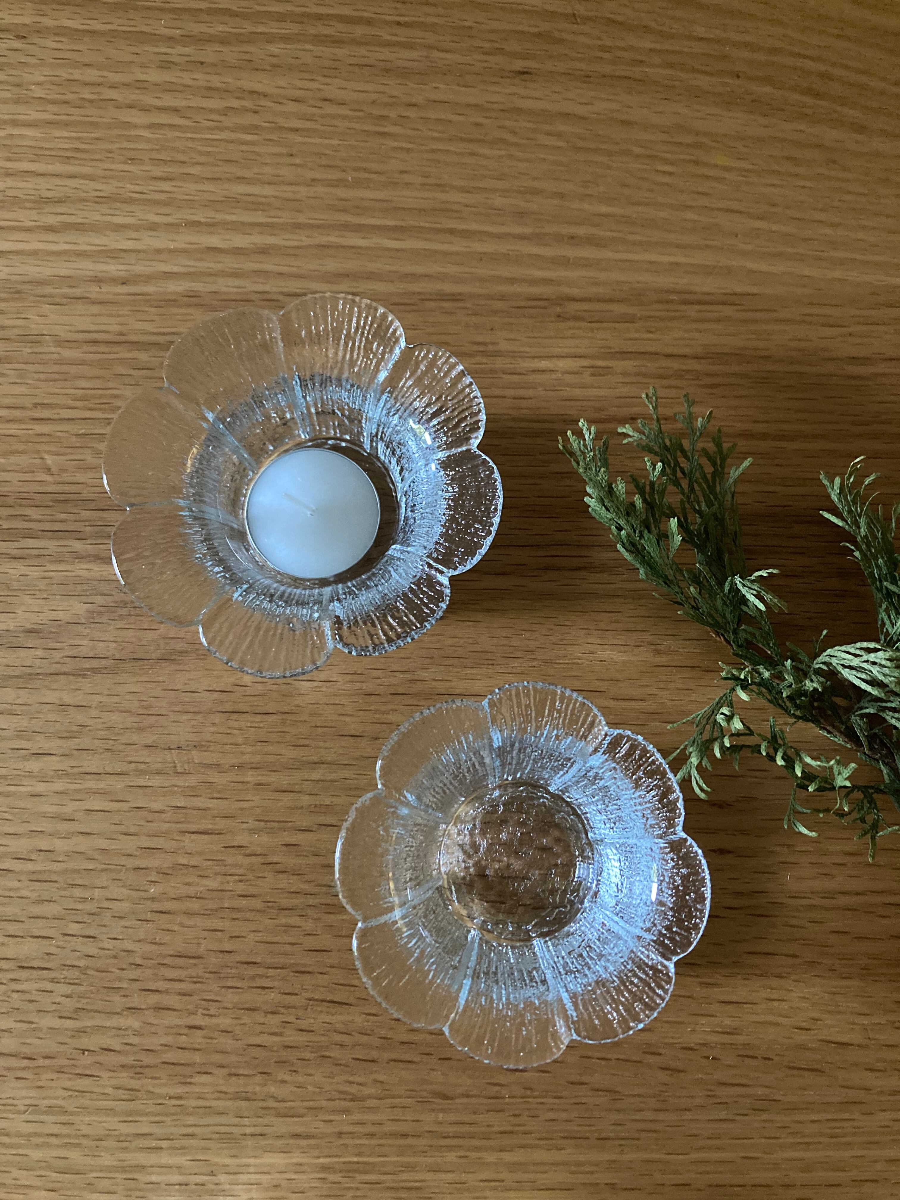 Teralehtiシリーズのガラスのキャンドルホルダーです。Teralehtiとは花びらの意味。その名の通り、お花がパッと開いたようなデザインが可愛らしいタイプ。