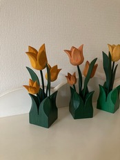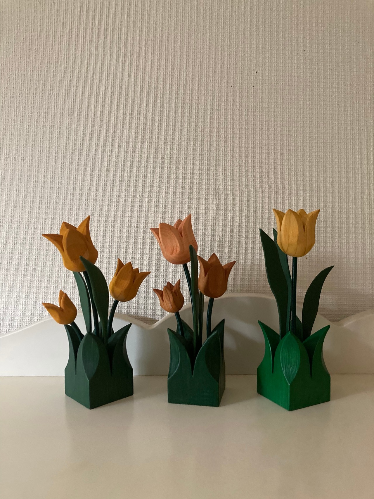 チューリップと、グリーンの葉っぱが可愛らしい木製のチューリップのオブジェです♫