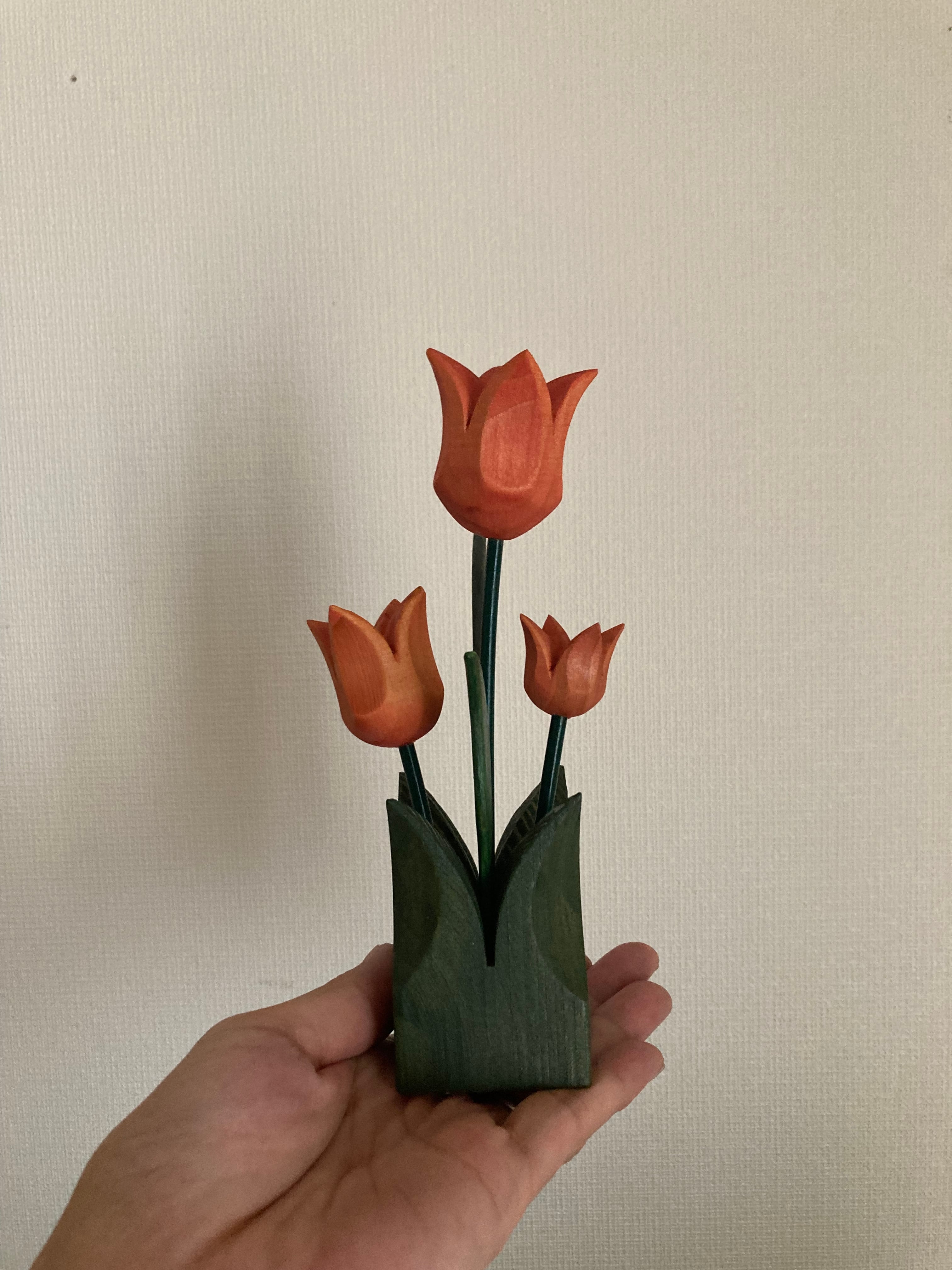 北欧 スウェーデンのヴィンテージの木製のチューリップのオブジェです。