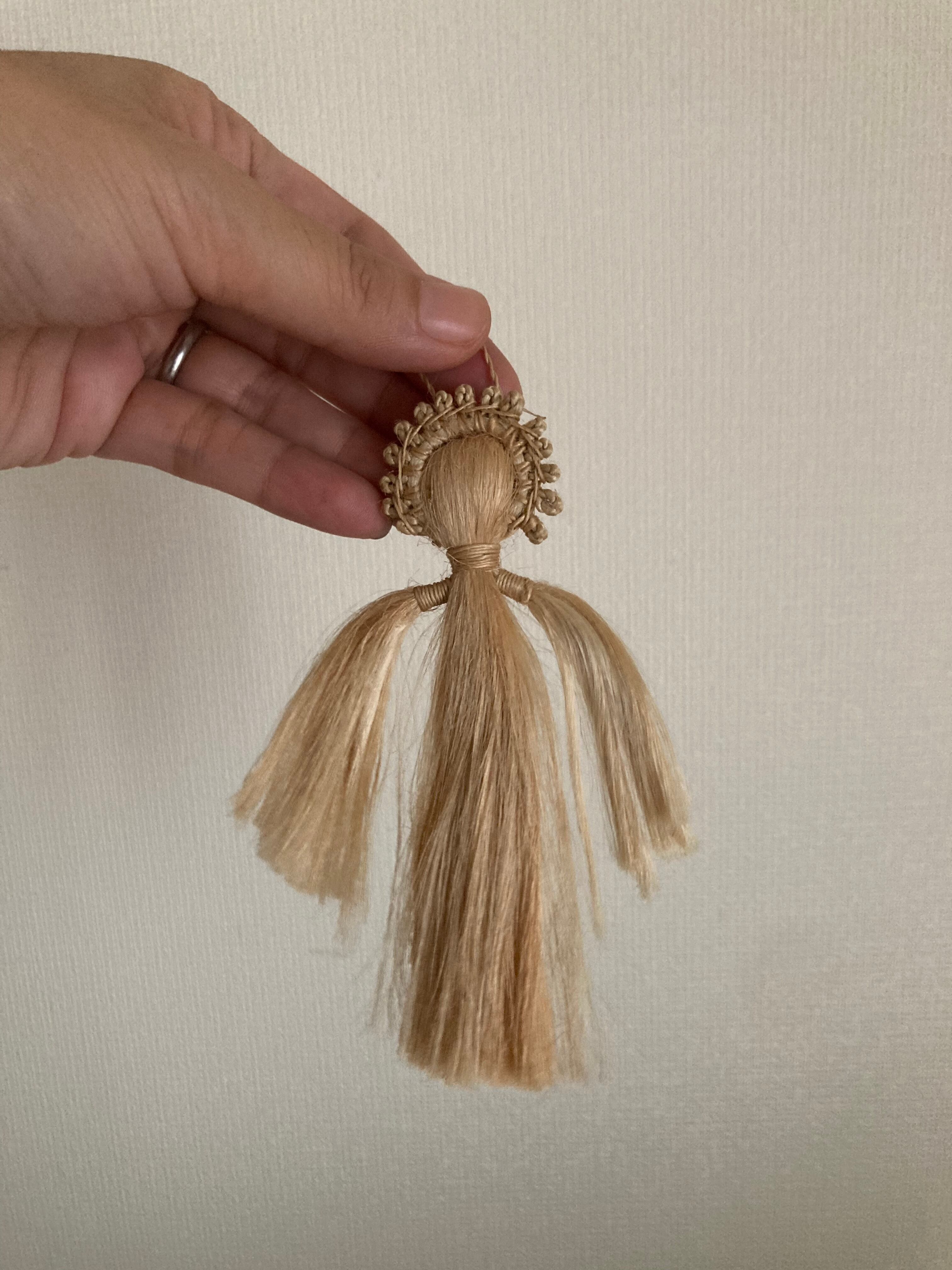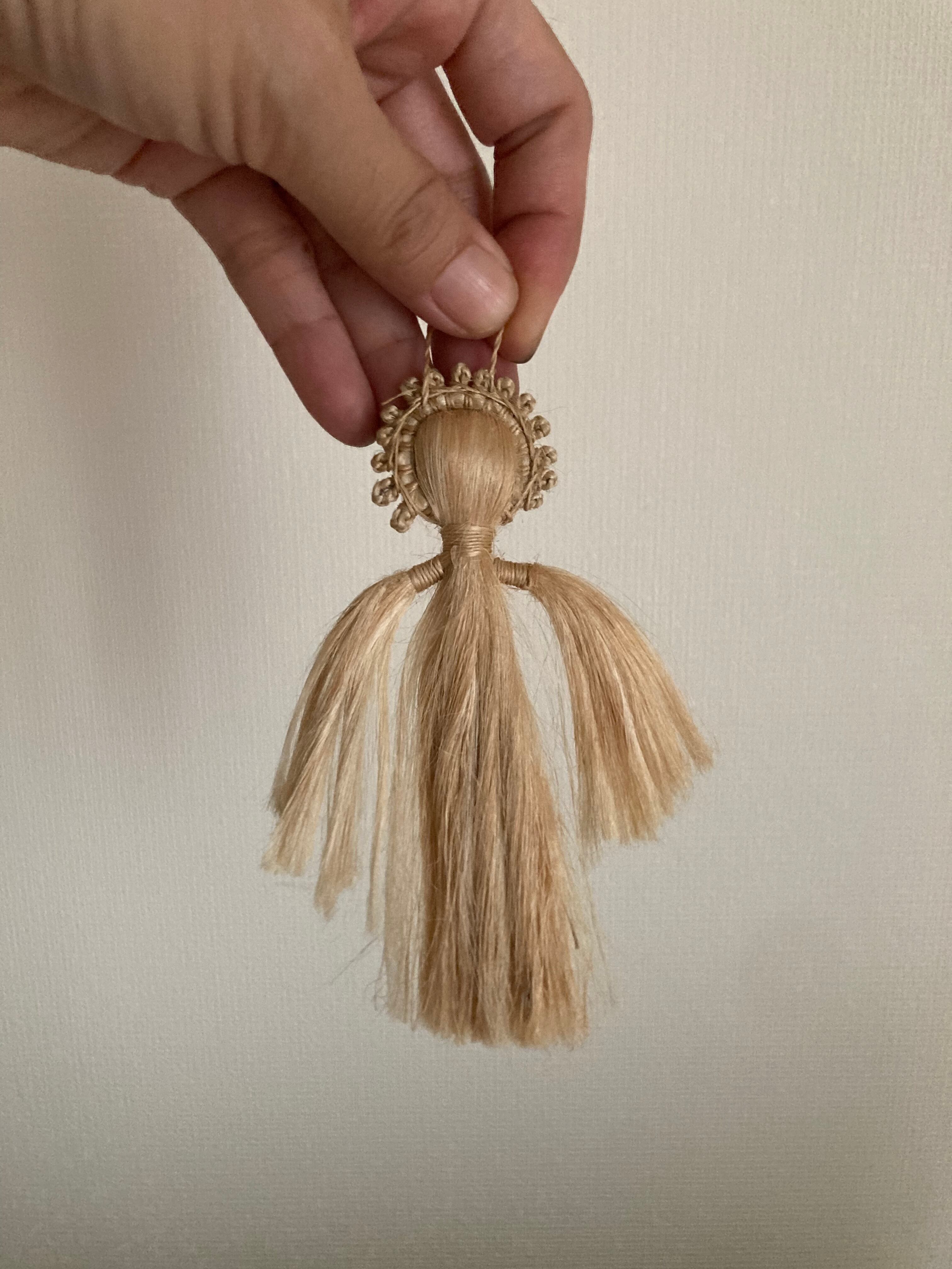 生成りの色味と、頭の編み模様、フサフサが素敵な、シンプルな天使のオーナメントです♫