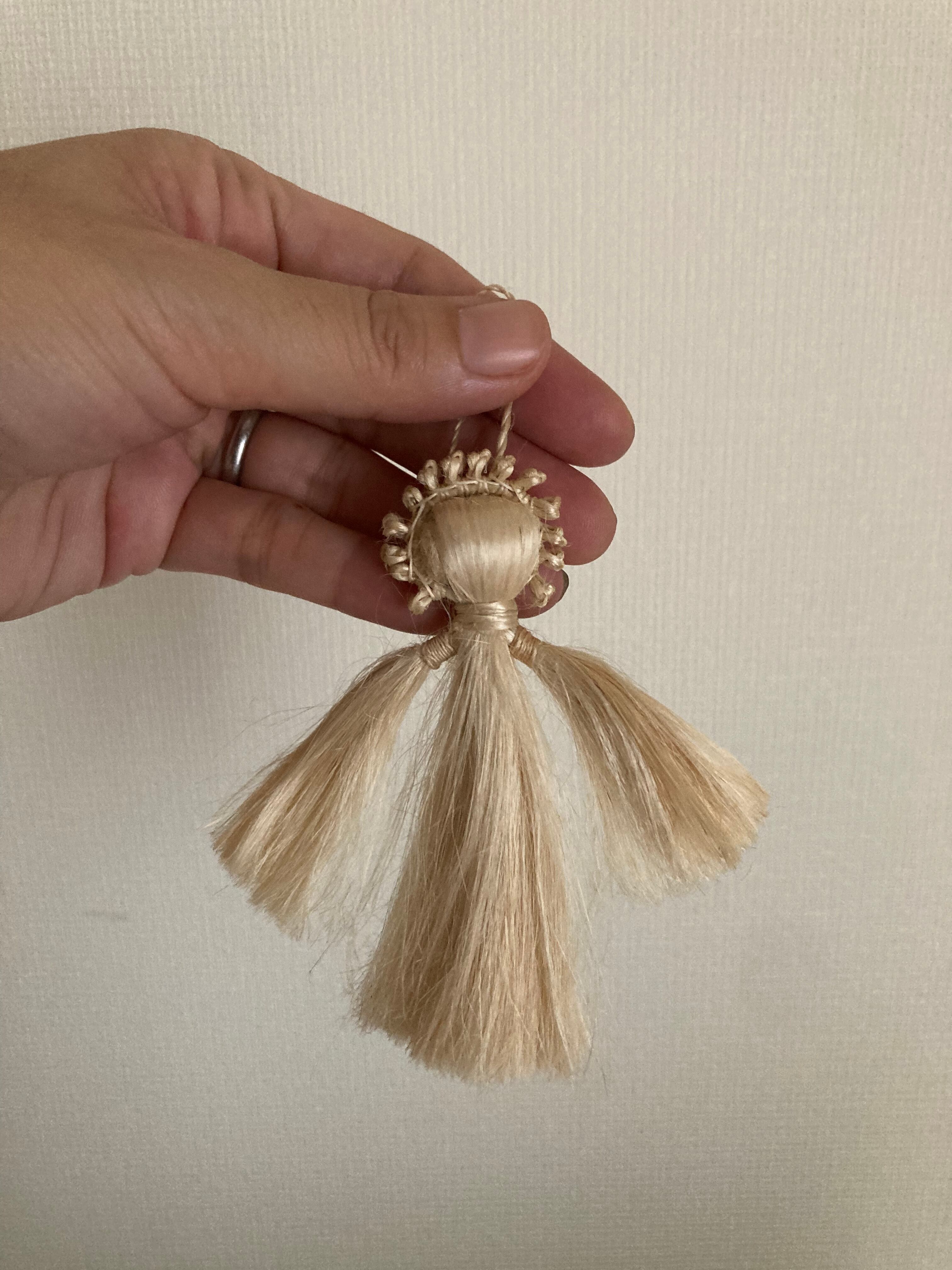 生成りの色味と、頭の編み模様、フサフサが素敵な、シンプルな天使のオーナメントです♫