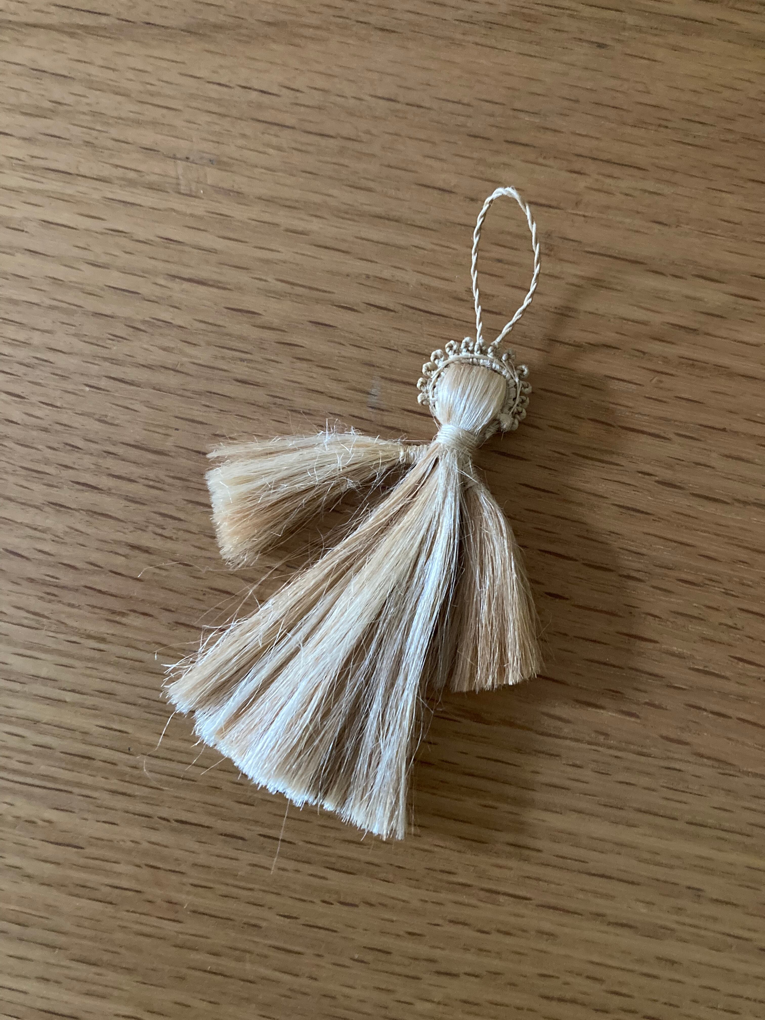 生成りの色味と、頭の編み模様、フサフサが素敵な、シンプルな天使のオーナメントです♫
