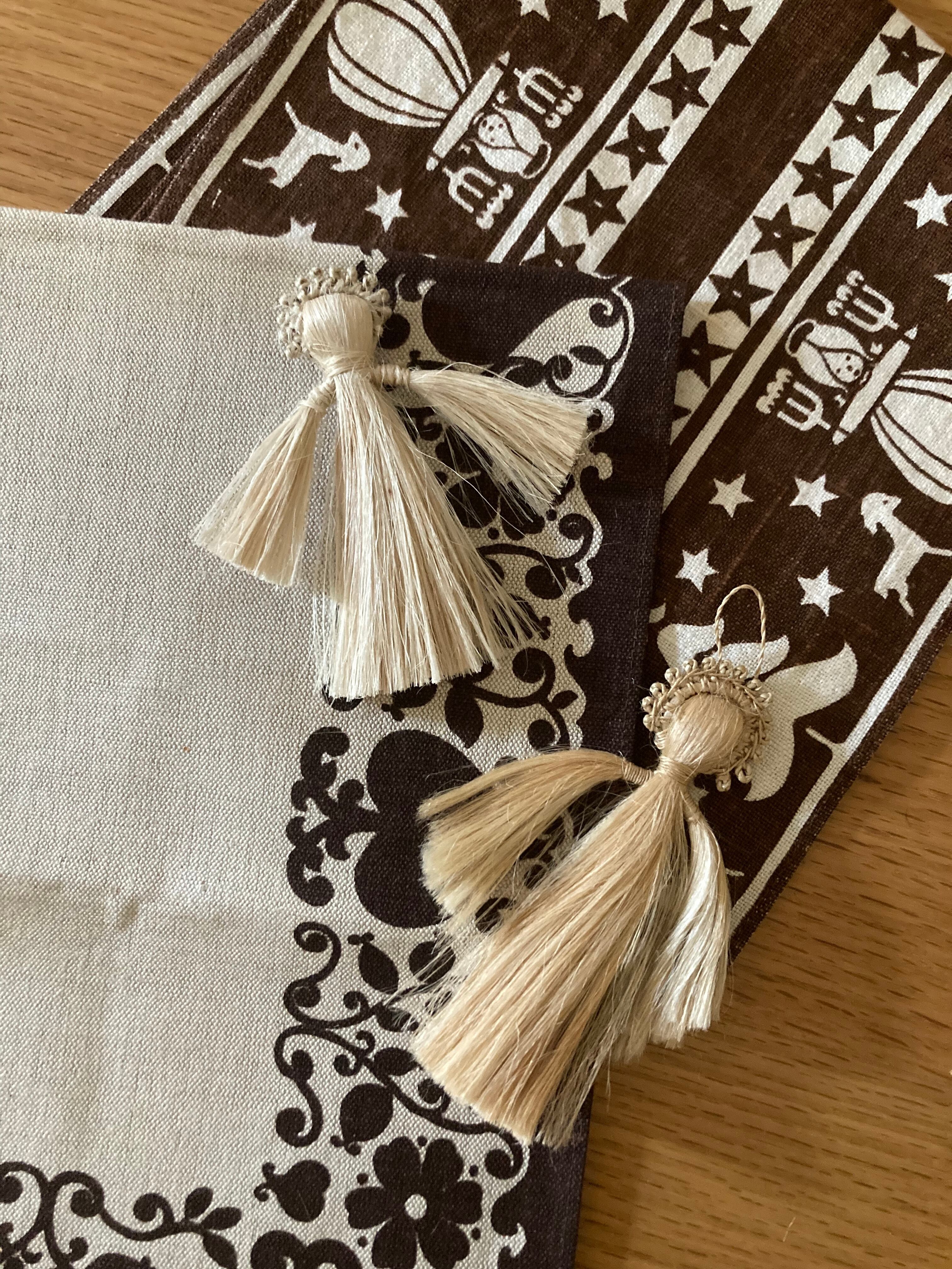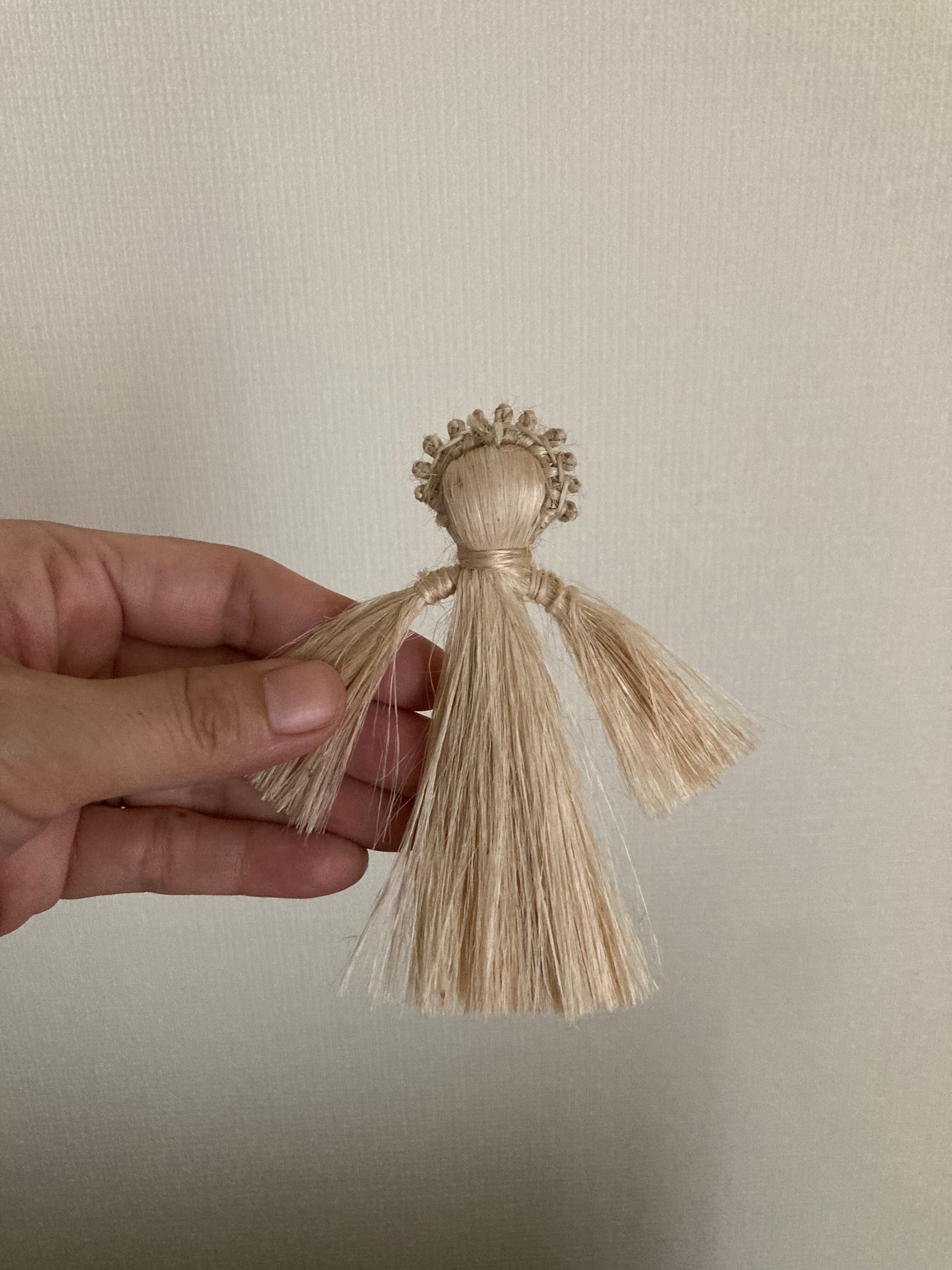 生成りの色味と、頭の編み模様、フサフサが素敵な、シンプルな天使のオーナメントです♫