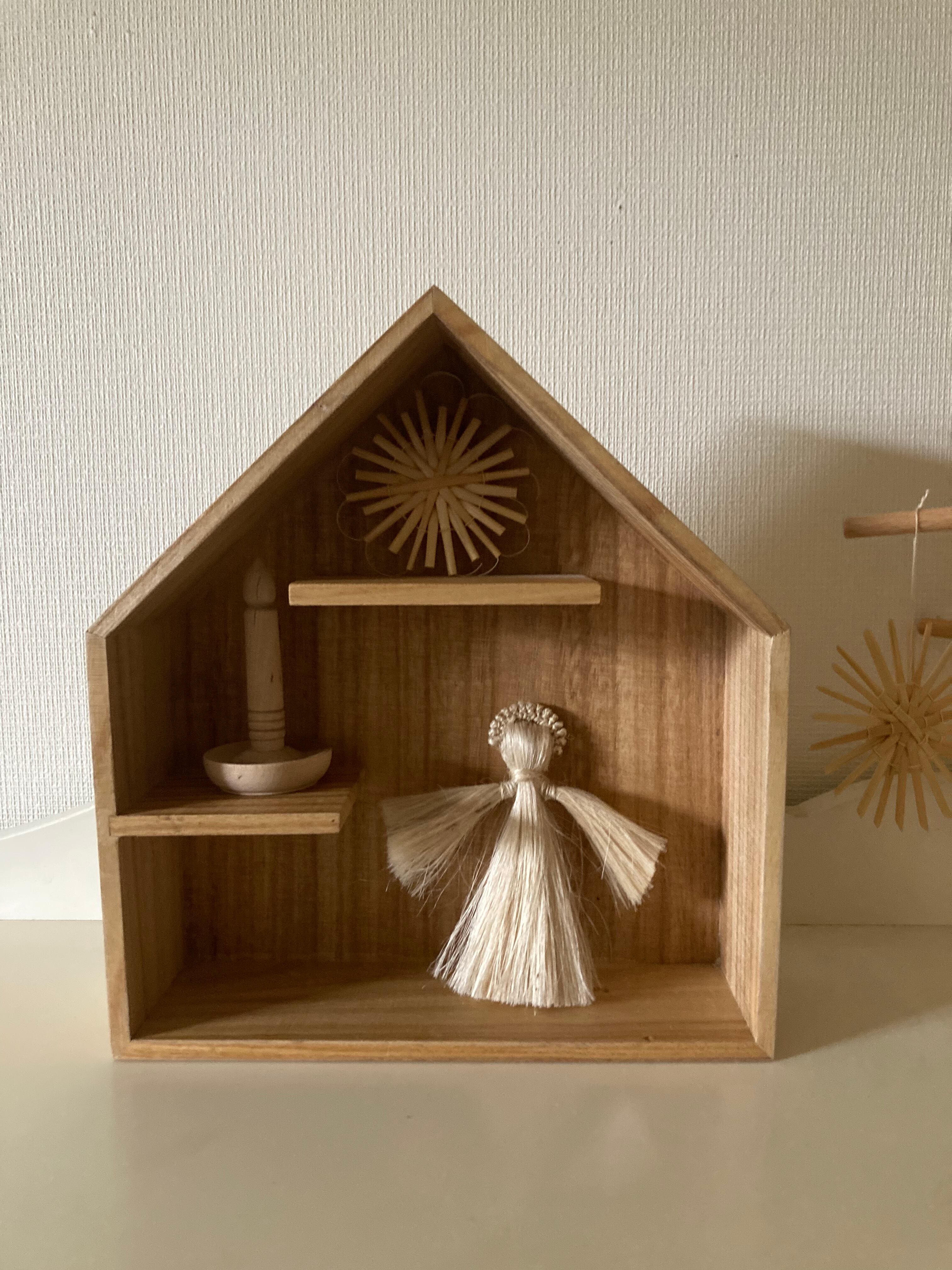 こちらは紐なしになりますので、ツリーにちょこんとのせたり、棚や額に入れて飾ったりとお好きなようにディスプレイして頂けます。