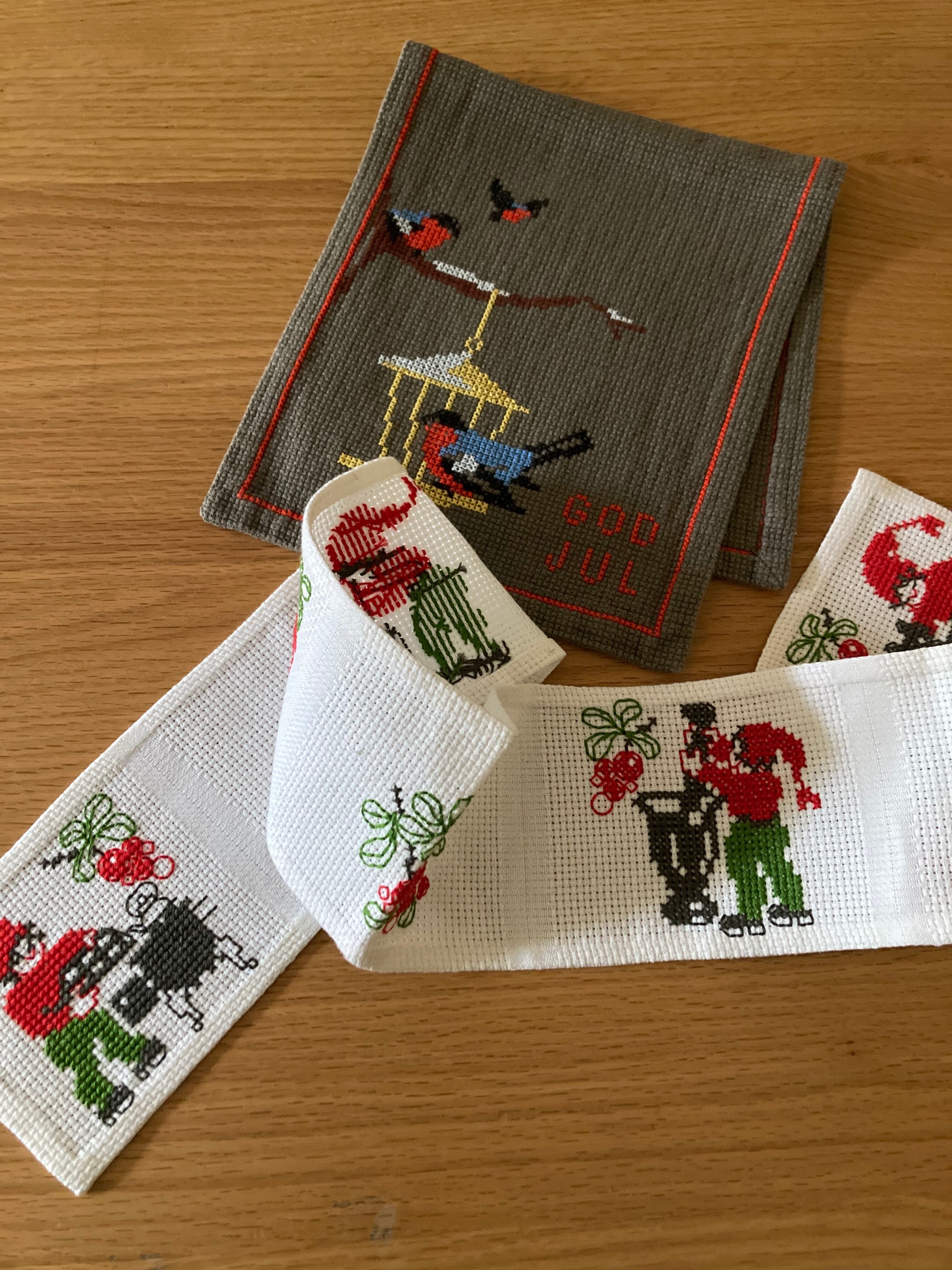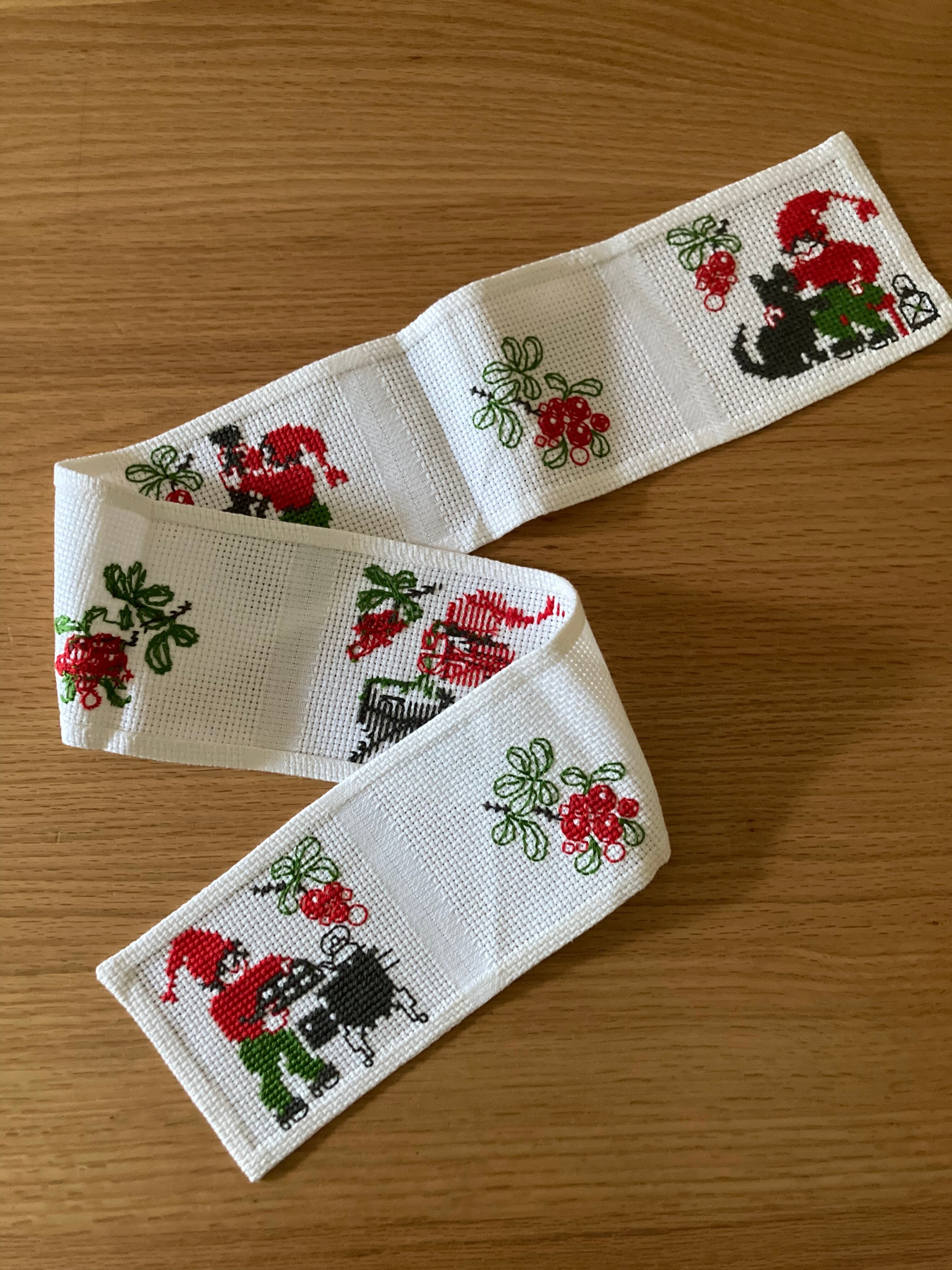 北欧 トムテ刺繍のテーブルランナー/ヴィンテージ