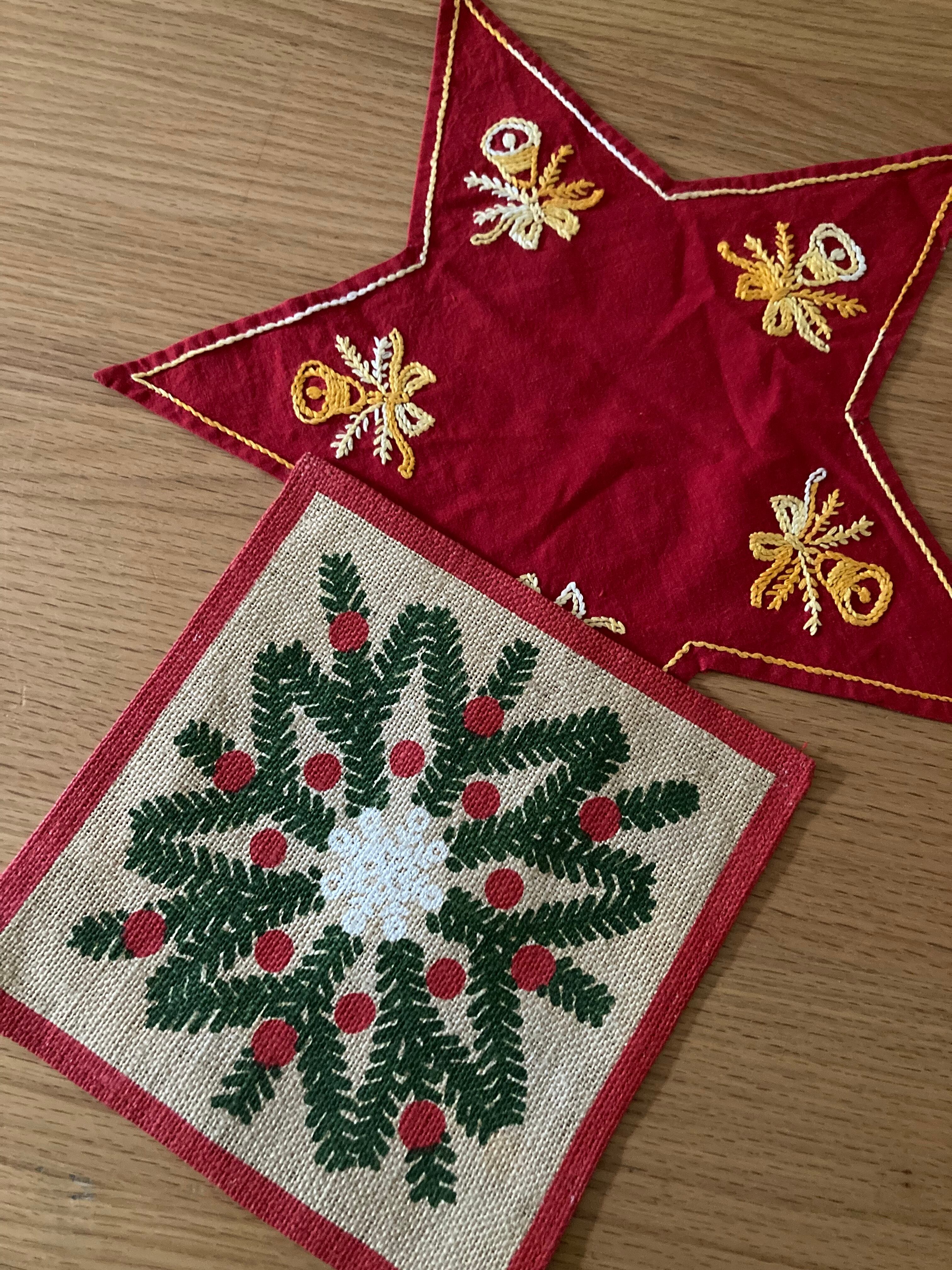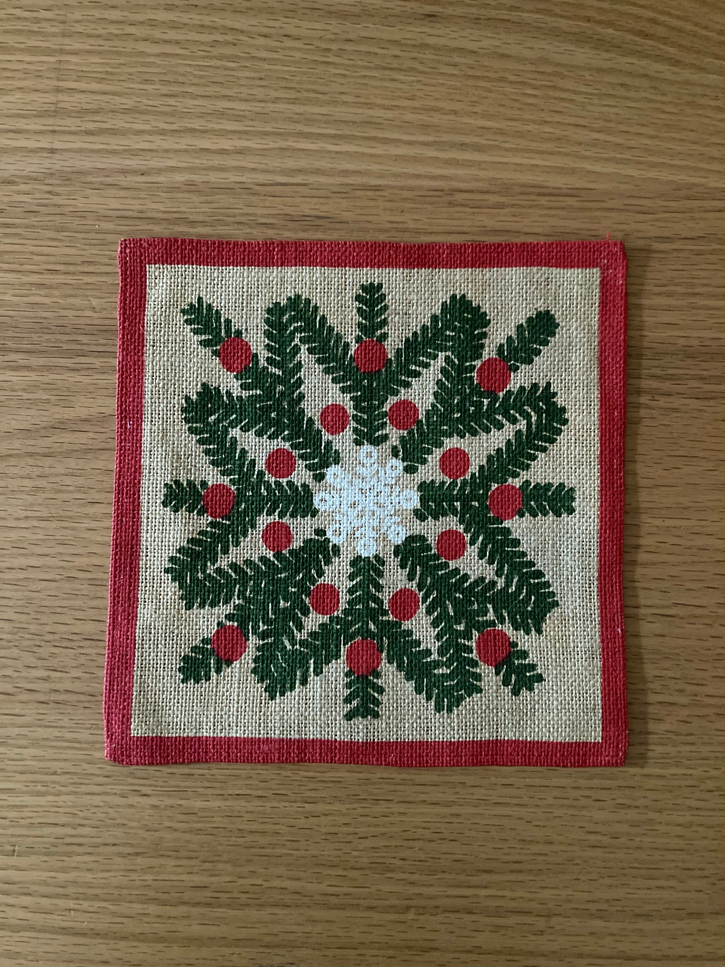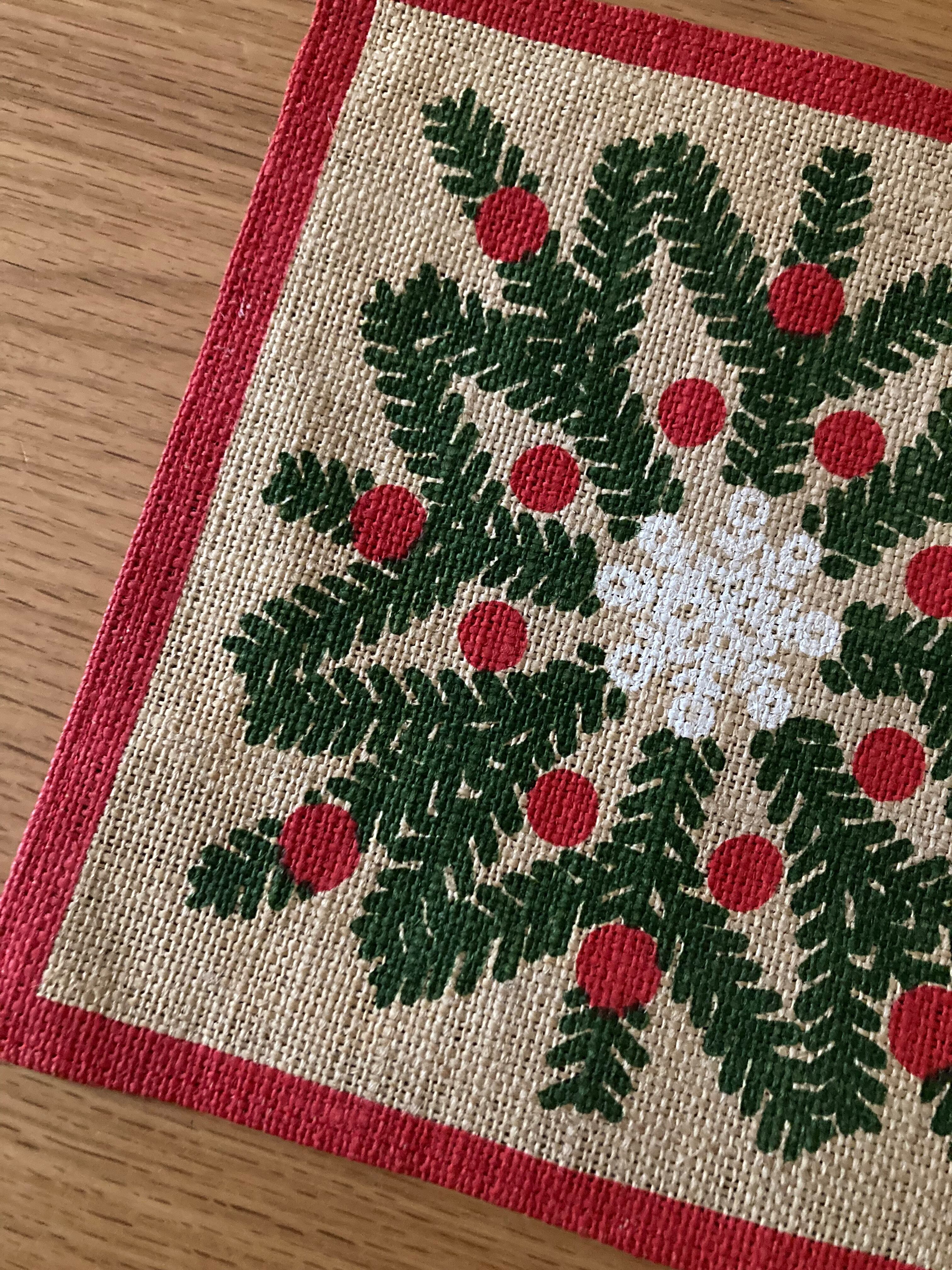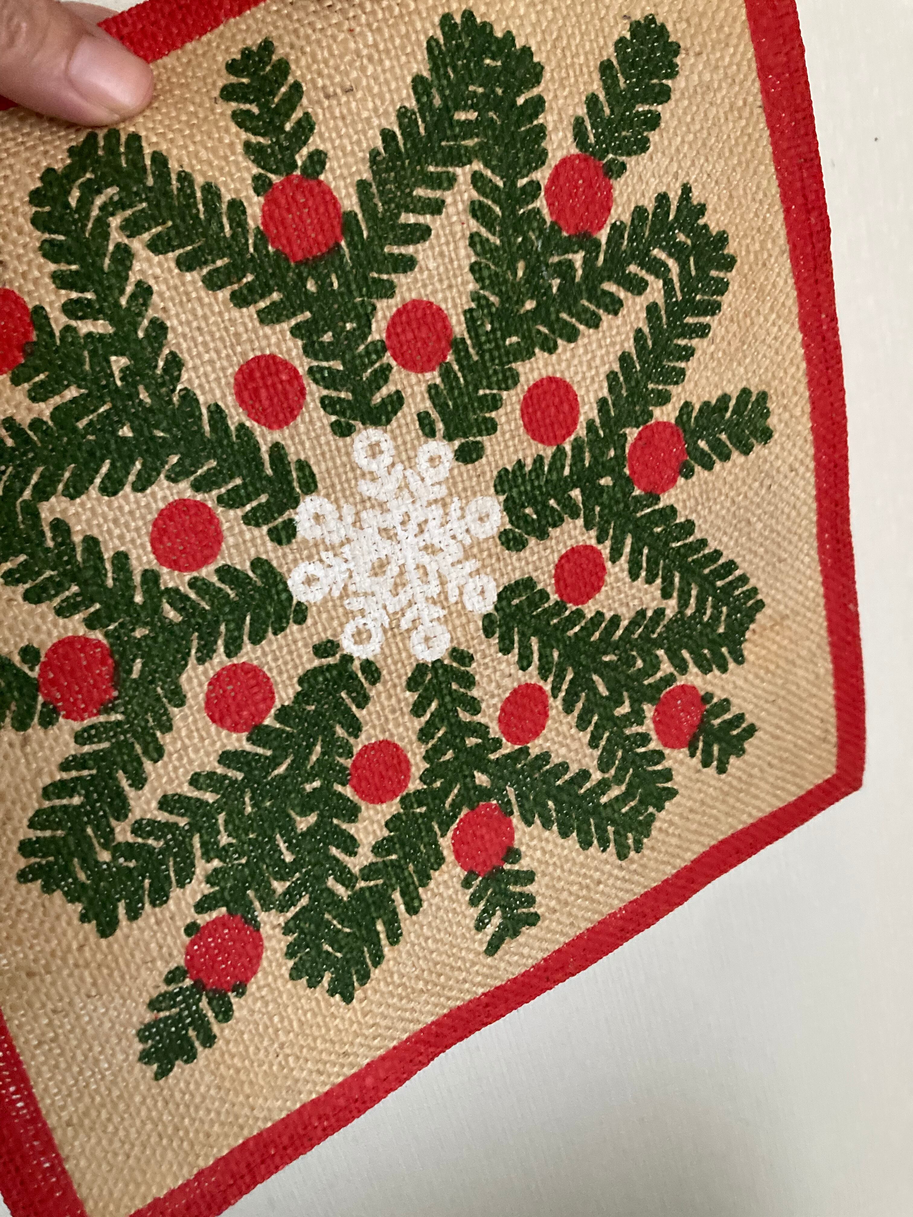 北欧 モミの木のリースのリネンクロス/ヴィンテージ