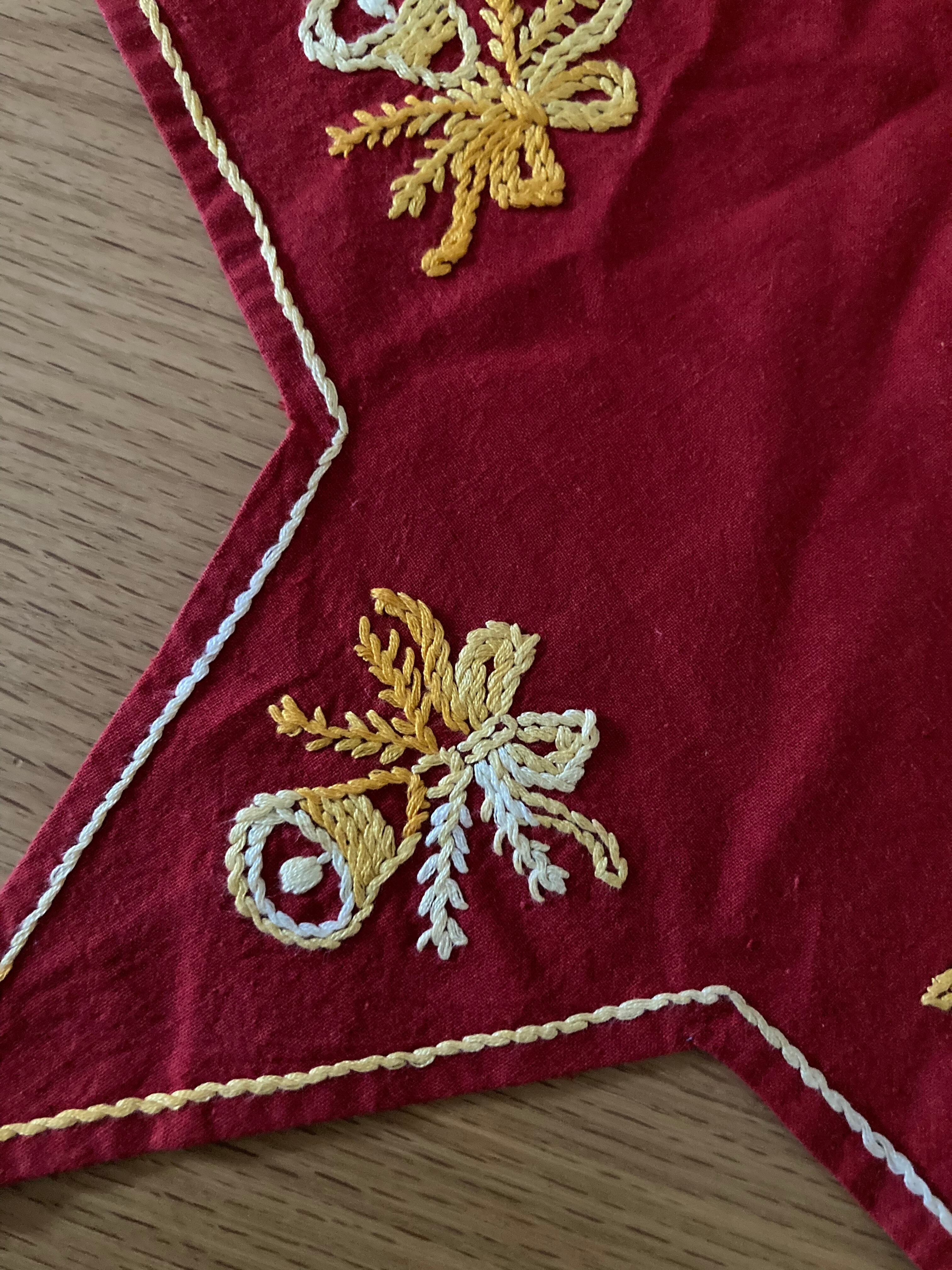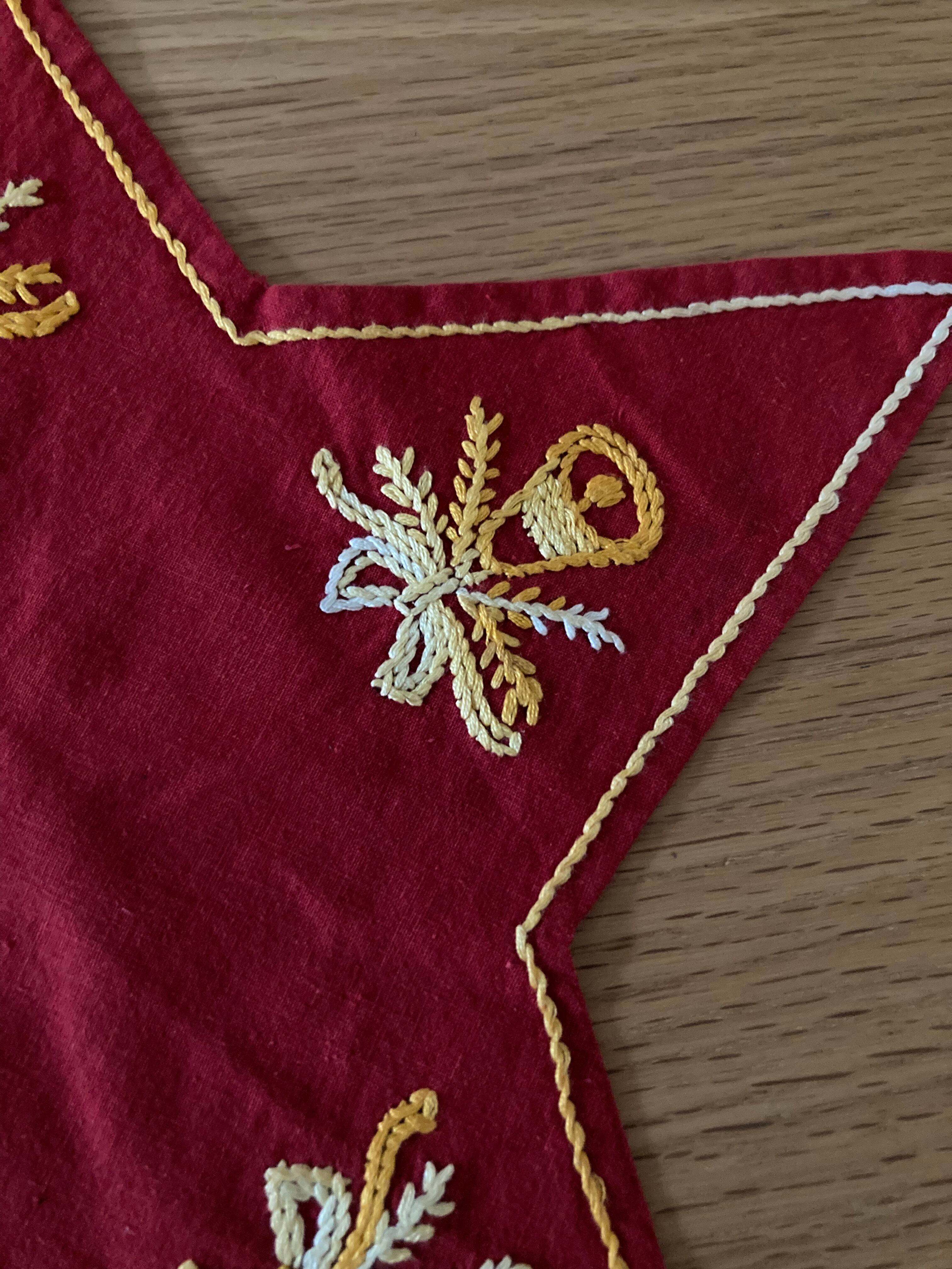 北欧 ベルとリボン刺繍 星型クロス/ヴィンテージ