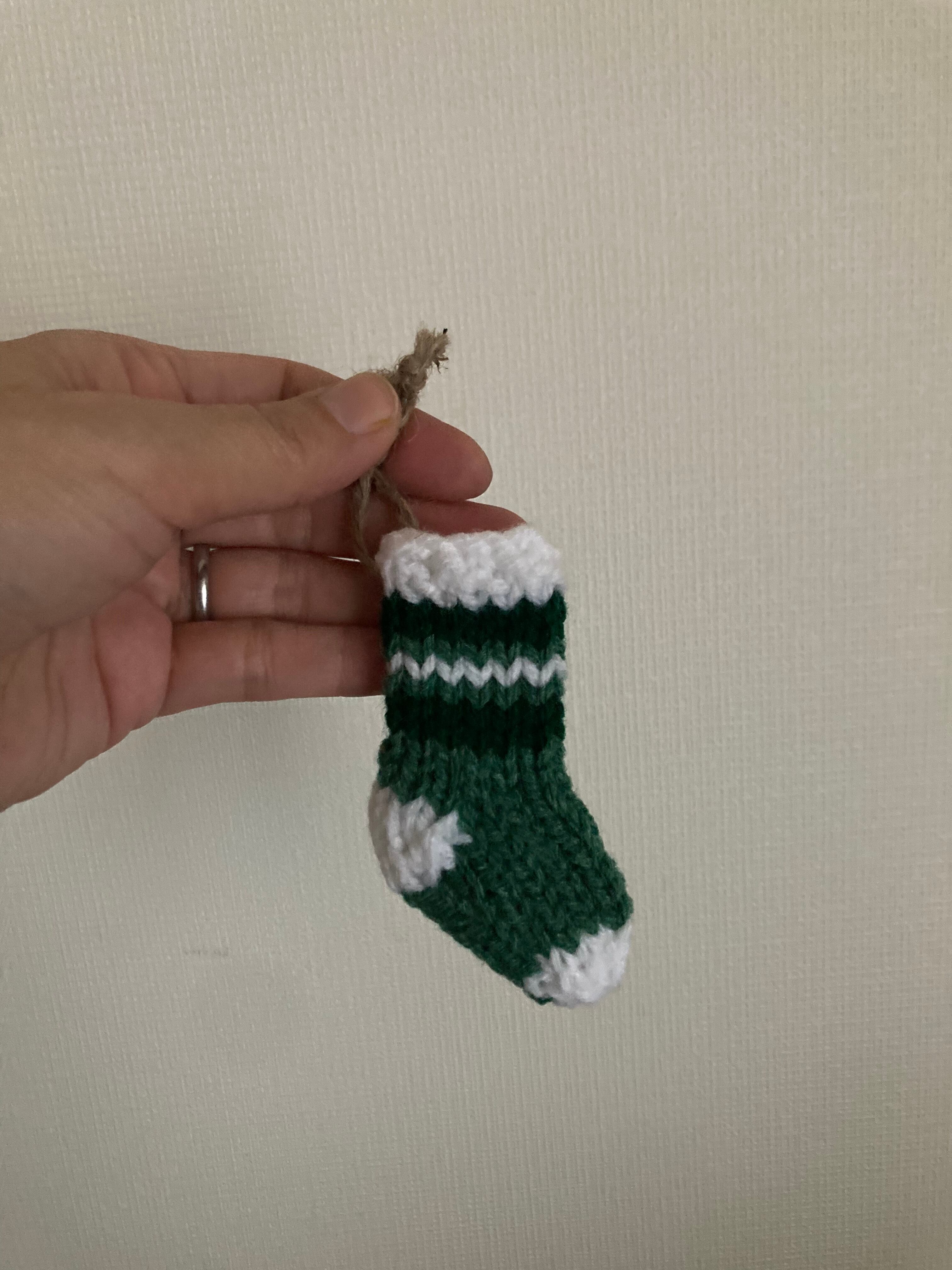 ウールの毛糸で編まれた靴下のオーナメント♫