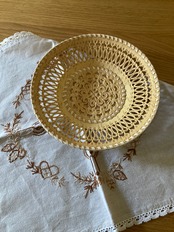 ベレスタ細工の中でも熟練の技が必要な、透かし彫りが美しく、またお花の型押しが可愛らしい、素敵な少し高さのあるプレートになります♫