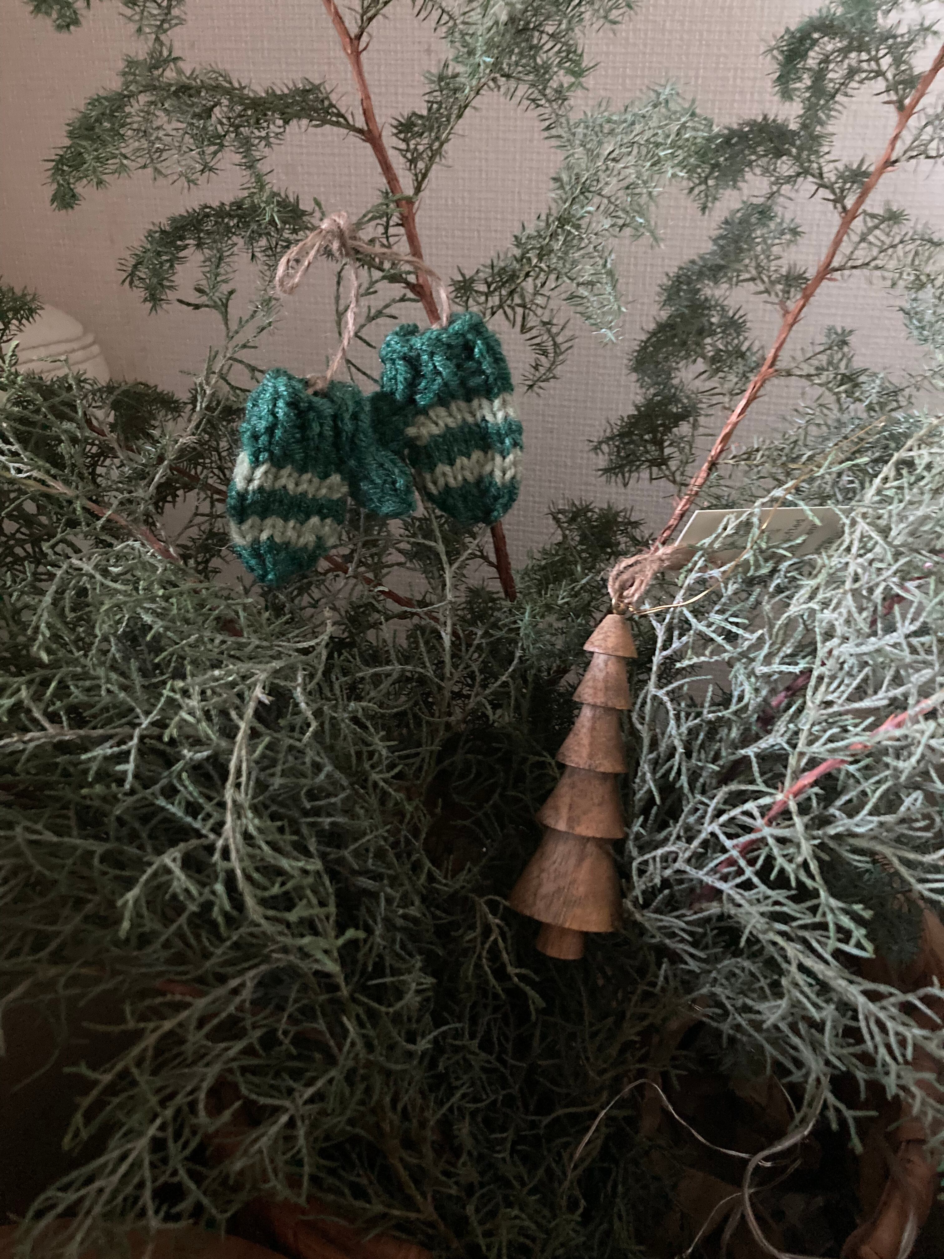 ウール100%の毛糸で編まれたミトンのオーナメント♫