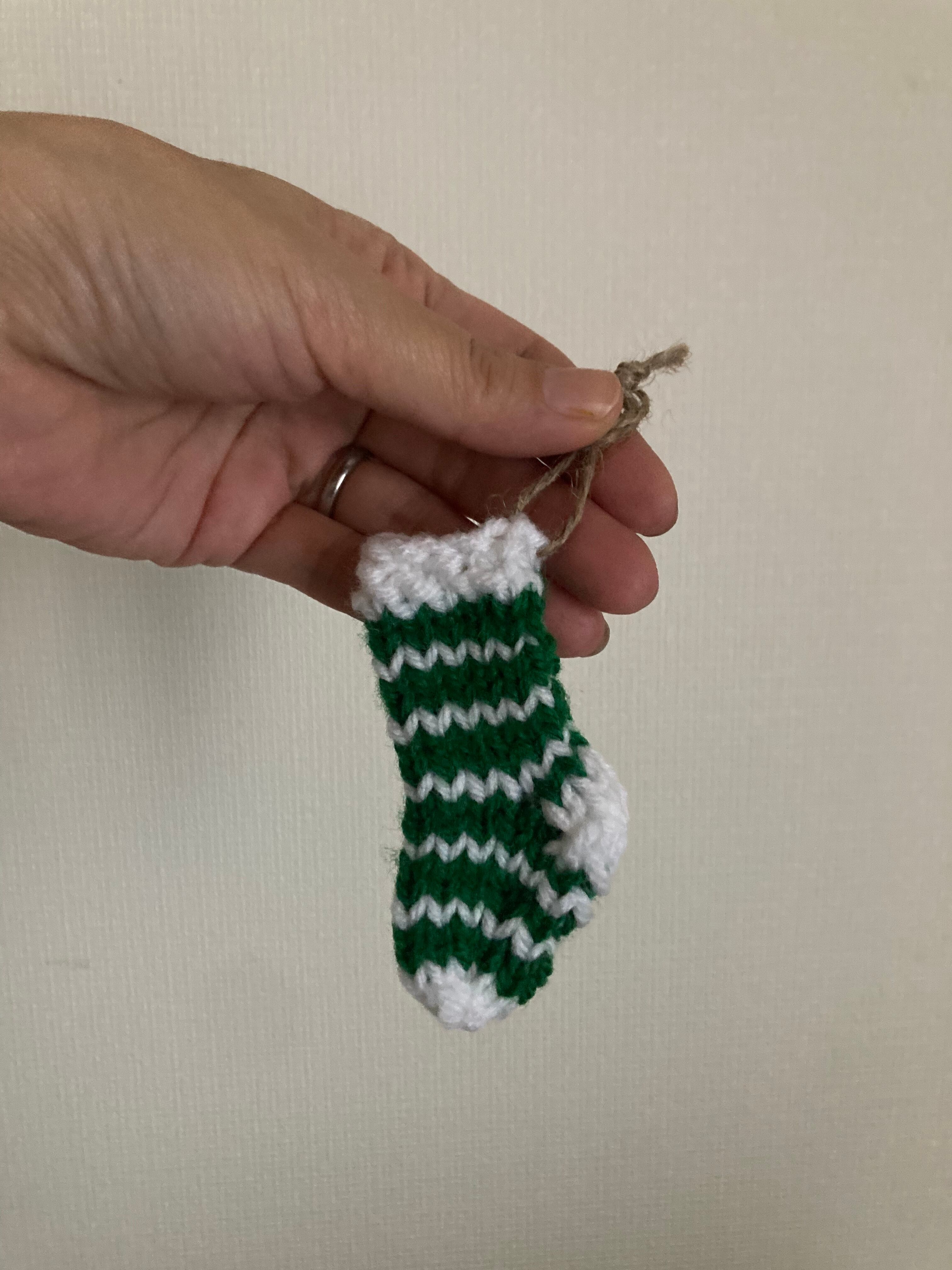 ウールの毛糸で編まれた靴下のオーナメント♫