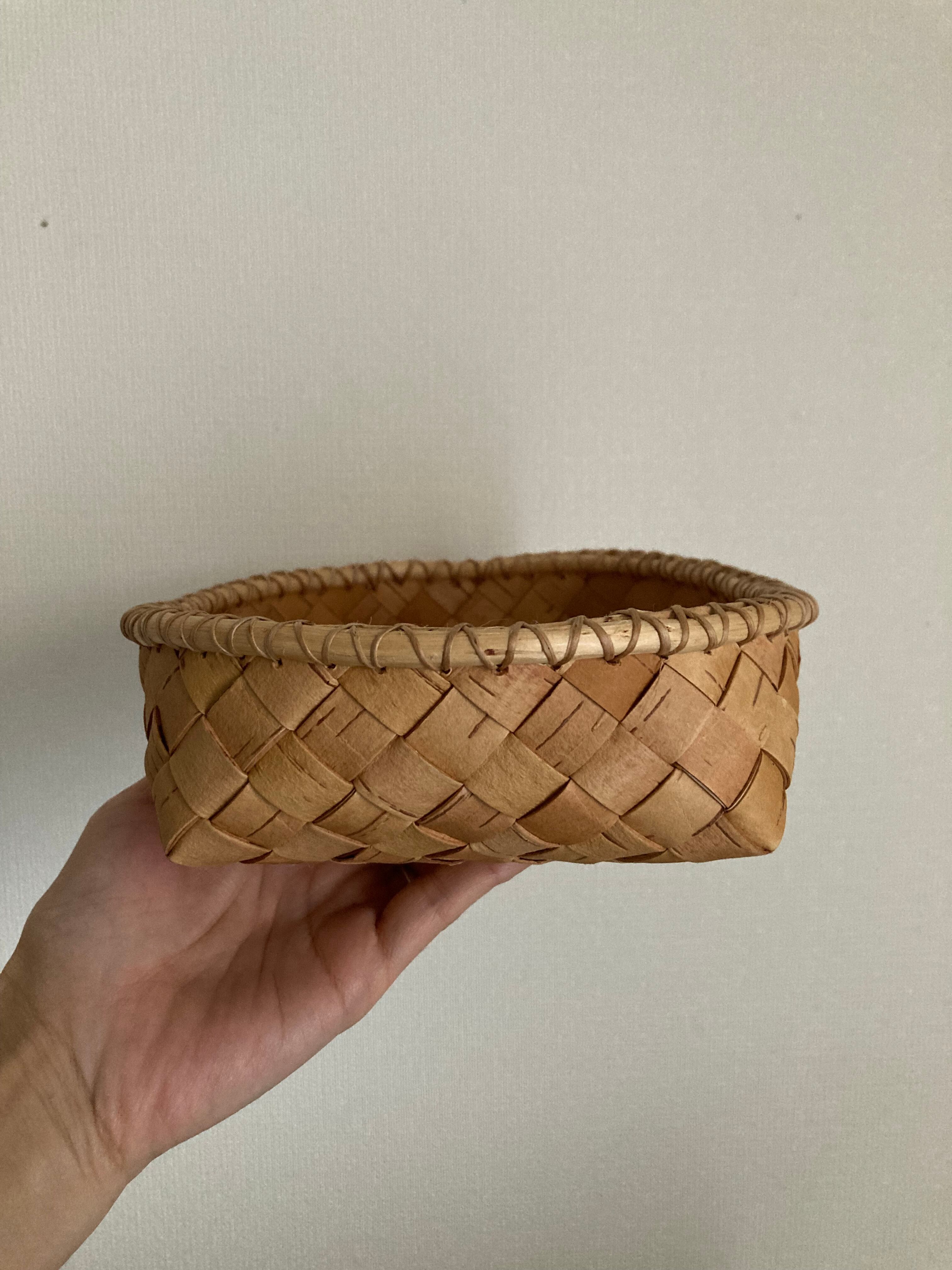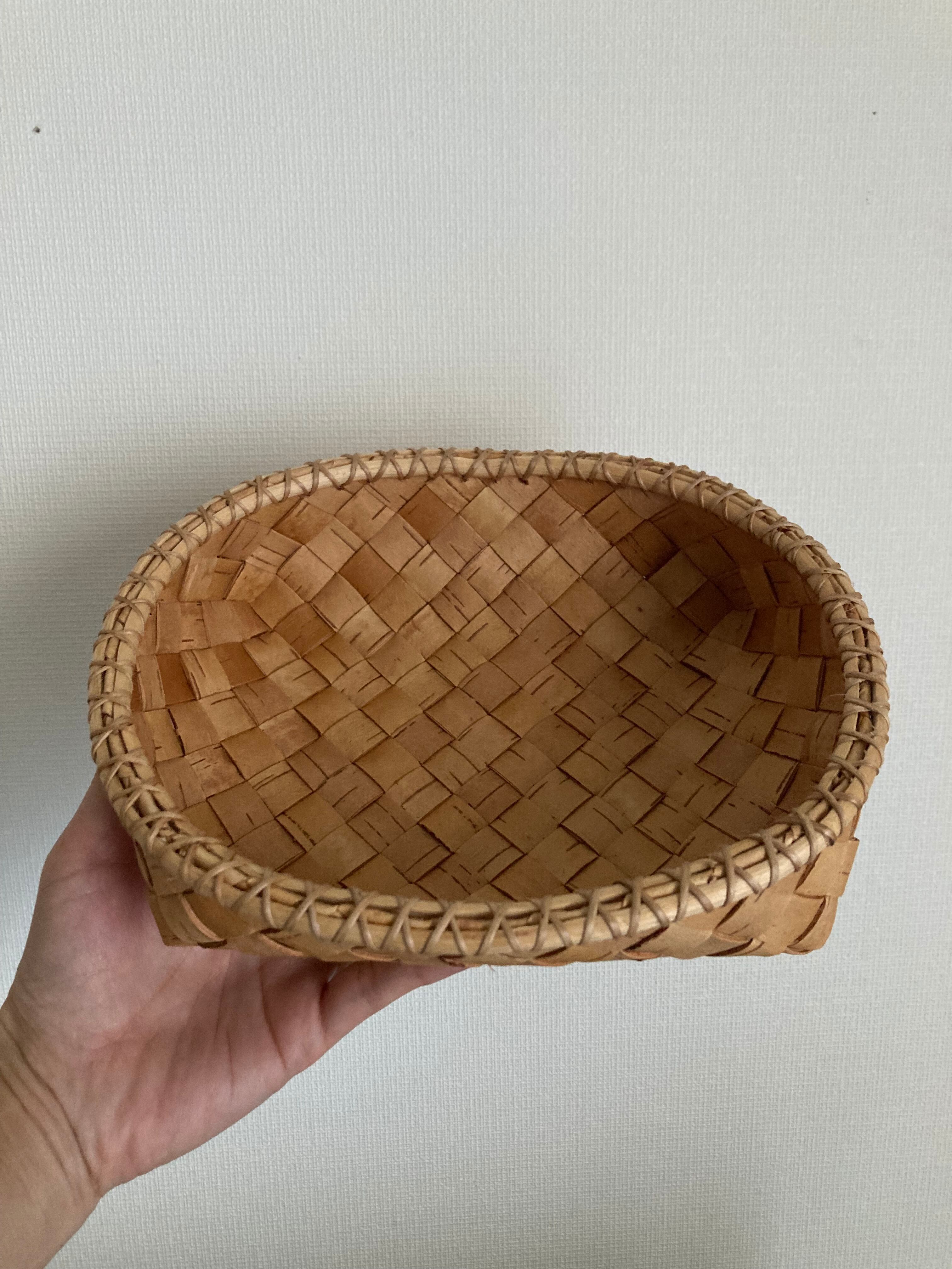 白樺編みの根かがりのかごになります。