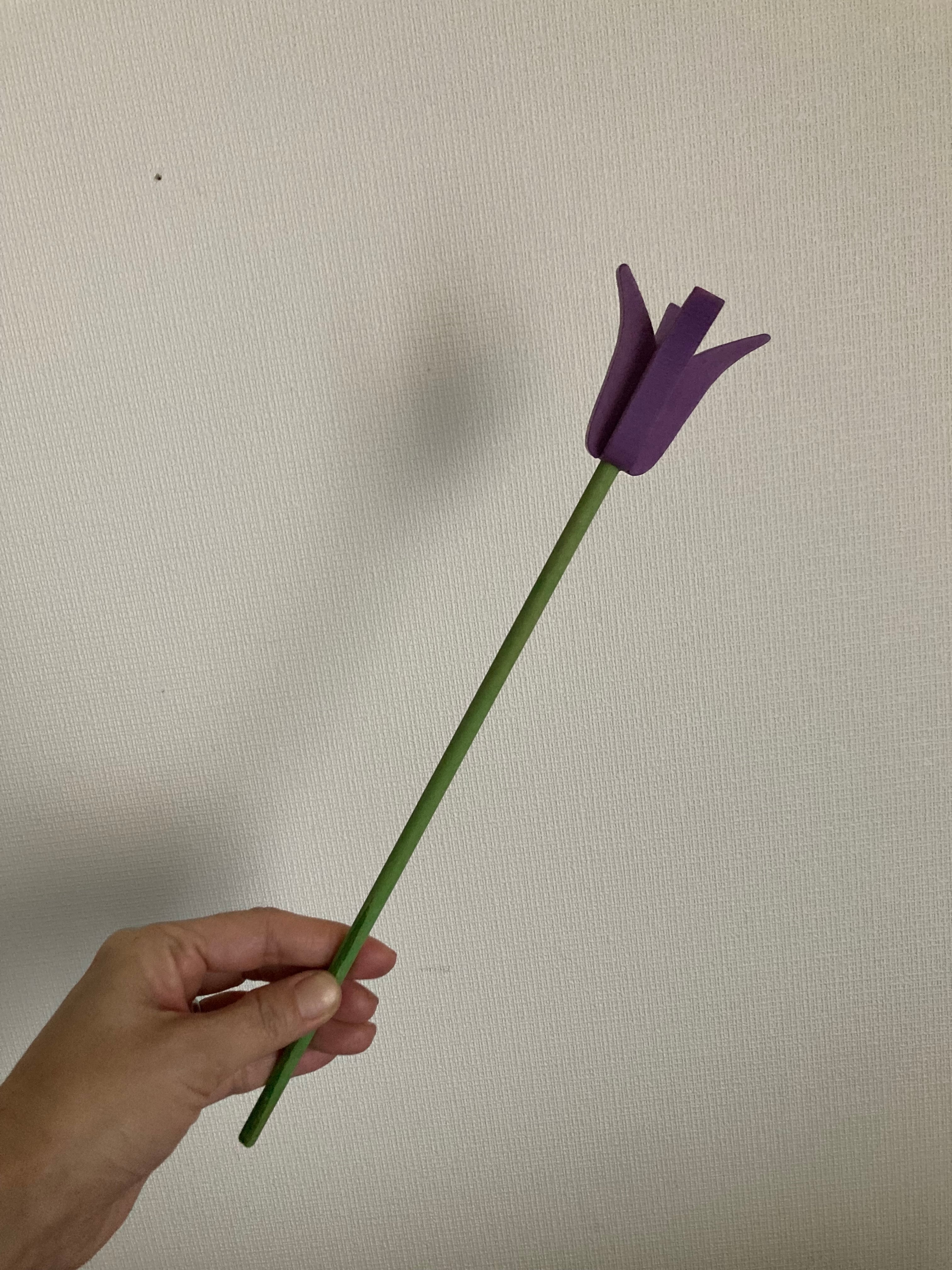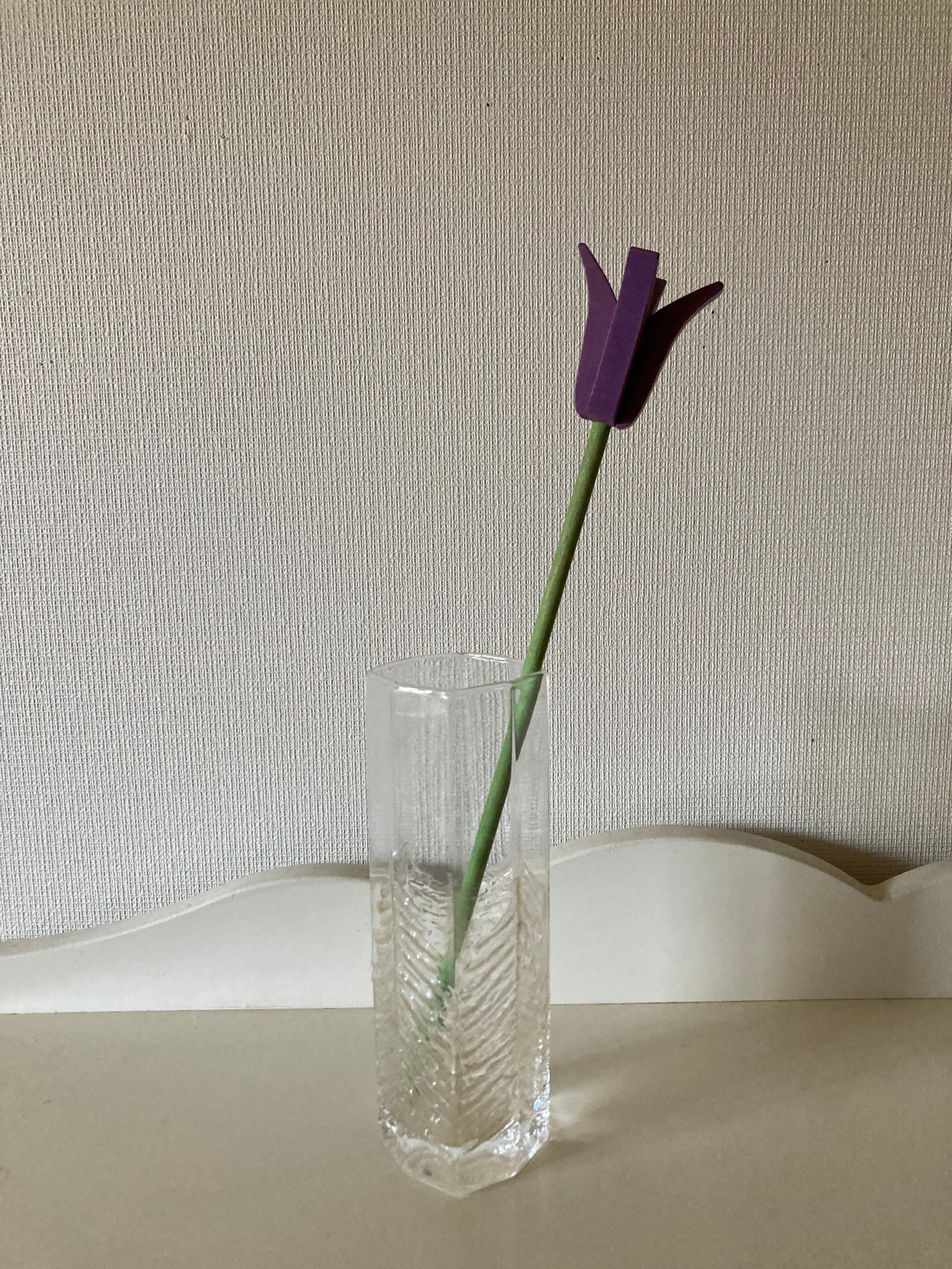 木製のすっとした茎のグリーンに、ライラックのチューリップが可愛らしいてす♫